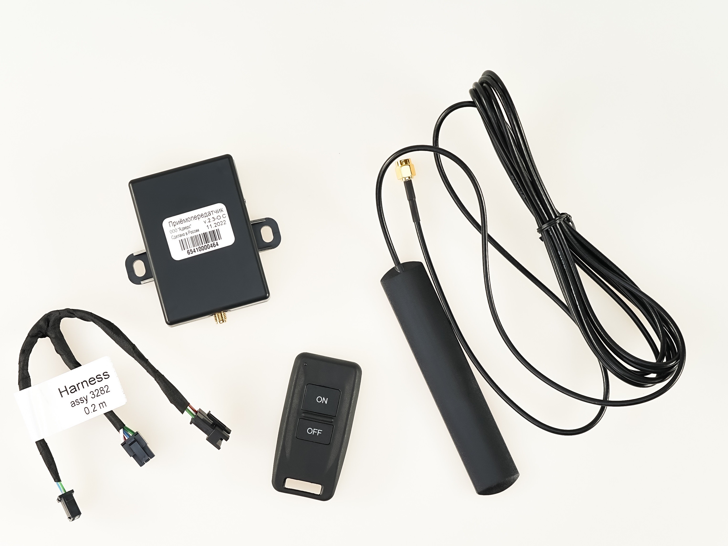 В комплект поставки входят: пульт дистанционного управления; приемопередатчик; жгут; антенна; руководство по эксплуатации.