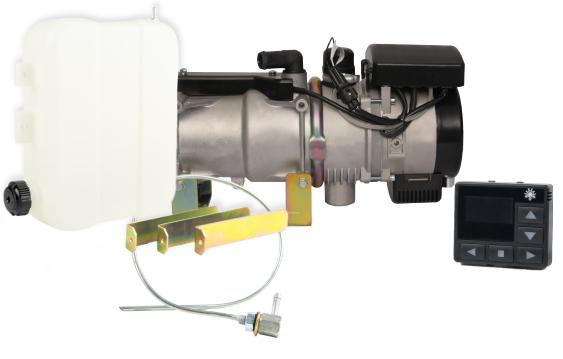 Блоки управления; Жгут питания; Подогреватель; Пульт управления с таймером; Электрическая помпа; Топливный насос, Топливный провод; Техническая документация; Гарантийный талон; Комплект для установки устройства;