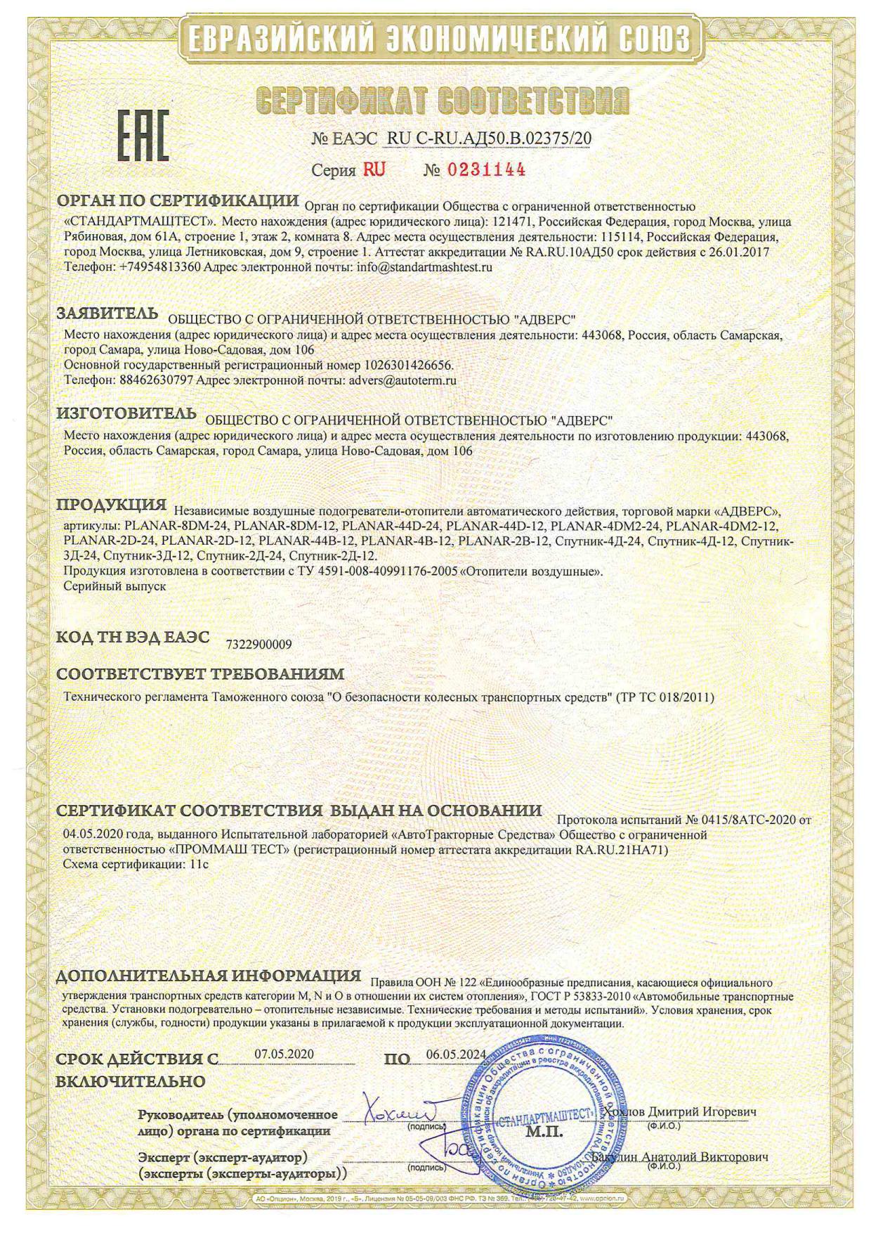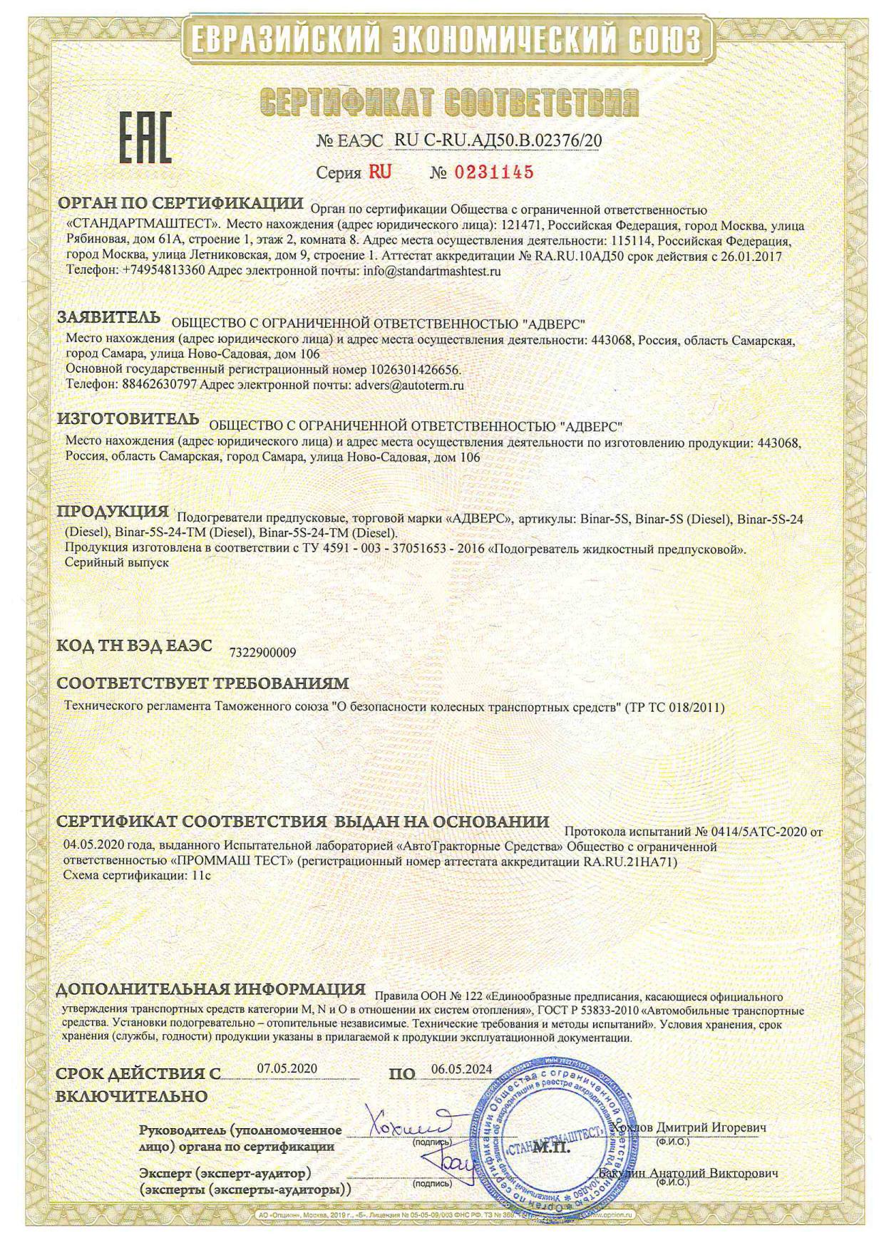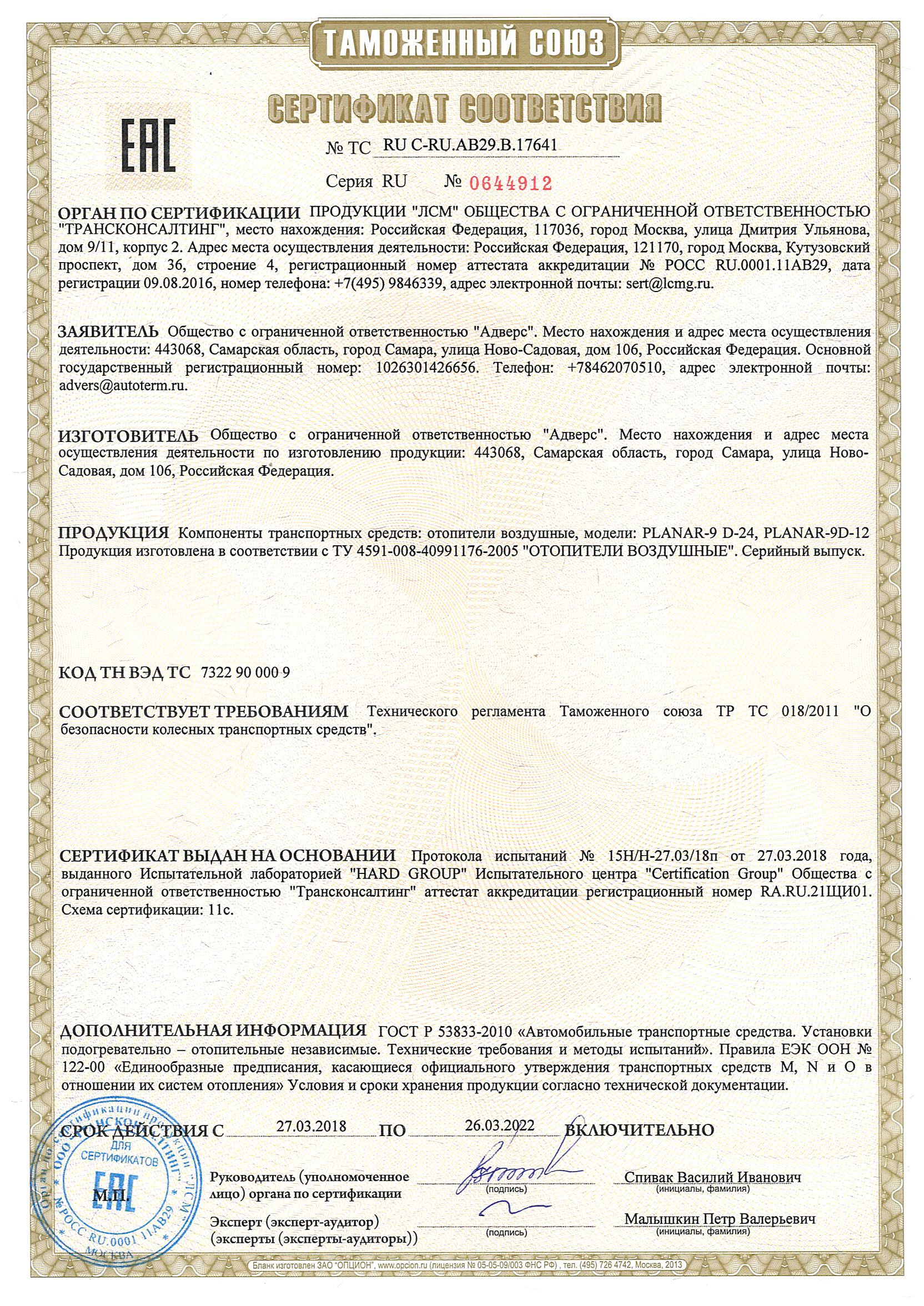 Сертификат соответствия